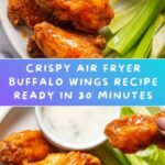 Crispy and flavorful Air Fryer Buffalo Wings made with a perfect balance of spicy Frank’s Red Hot sauce and buttery goodness. These wings are easy to prepare, air fried to perfection, and served with classic blue cheese or ranch dressing and crunchy celery sticks for a delicious appetizer or snack.