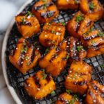 Once your Air Fryer Honey Garlic Salmon Bites are cooked, sprinkle sesame seeds and chopped green onions over the top if you like. These garnishes add delightful texture and a fresh note that perfectly complements the rich glaze.