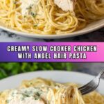 Angel Chicken is a creamy, comforting slow-cooked dish featuring tender chicken breasts simmered in a luscious cream cheese and Italian seasoning sauce, served over delicate angel hair pasta and garnished with fresh Italian parsley and Parmesan cheese. This recipe combines simple ingredients with a long, slow cook to yield a rich and satisfying meal perfect for family dinners.