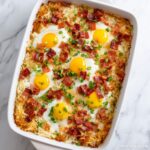 This hearty Bacon, Egg, and Hash Brown Casserole combines crispy bacon, fluffy eggs, and golden hash browns baked together for a perfect breakfast or brunch dish. Packed with flavorful cheddar cheese and seasoned with garlic and onion powder, this casserole is both comforting and satisfying, making it ideal for feeding a crowd or prepping ahead for busy mornings.
