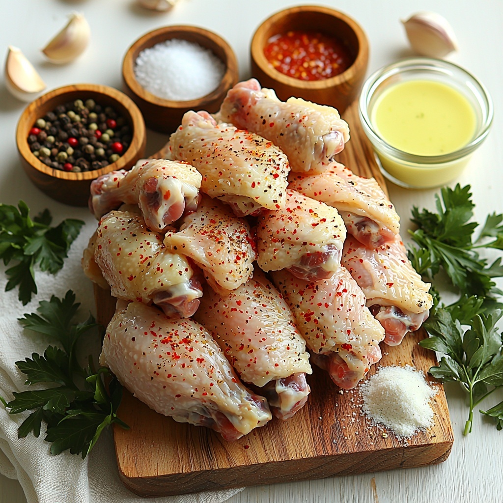 Start by preheating your oven to 400 degrees Fahrenheit to get it ready for crisping these beauties. In a large bowl, whisk together the lemon juice, olive oil, finely minced garlic, black pepper, red pepper flakes, and salt until they form a slightly thick, fragrant sauce. This sauce will gently coat each wing, infusing them with a vibrant burst of flavor before they bake.