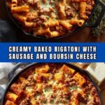 This Baked Rigatoni with Sausage and Boursin Cheese is a comforting Italian-American pasta bake that combines al dente rigatoni with a rich, creamy tomato and Boursin cheese sauce, savory Italian sausage, and melted mozzarella and Parmesan cheese, all baked to golden perfection. It’s a perfect dish for a hearty weeknight dinner or a cozy family meal.
