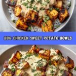 Delicious and easy BBQ Chicken & Roasted Sweet Potato Bowls, perfect for a healthy, flavorful meal. Tender chicken breasts marinated in tangy BBQ sauce and roasted alongside sweet potatoes create a balanced dish with vibrant flavors and comforting textures.