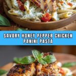 This Best Honey Pepper Chicken Panini Pasta is a flavorful and comforting skillet meal combining tender chicken strips seasoned with smoky spices, sweet honey, and a touch of heat. Tossed with al dente penne pasta and sautéed colorful bell peppers and onions, then topped with melted mozzarella and Parmesan cheeses, this dish offers a delightful panini-inspired experience in a hearty pasta format. Perfect for weeknight dinners, it’s easy to prepare, boasting a perfect balance of sweet, savory, and spicy flavors.