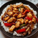A flavorful and spicy Black Pepper Chicken recipe featuring tender chicken breast pieces stir-fried with fresh bell peppers, onions, garlic, and a bold black pepper sauce. Perfectly seasoned with soy and oyster sauces, this Asian-inspired dish is quick to prepare and ideal served over rice or noodles for a satisfying main course.