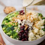 - Toss Salad: Pour the dressing over the broccoli, cauliflower, cranberries, and toasted nuts. Toss everything well to ensure the salad is evenly coated with the dressing.