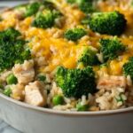 A comforting and hearty Broccoli, Rice, Cheese, and Chicken Casserole featuring tender cooked rice, shredded chicken, fresh broccoli, creamy soups, and melted cheddar cheese baked to perfection. Perfect for a family dinner, this casserole combines rich flavors and wholesome ingredients in an easy, one-dish meal.