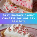 This festive Candy Cane Pie is a delightful no-bake dessert featuring a chocolate cookie crust filled with a creamy peppermint-flavored filling, topped with whipped cream and crushed candy canes for a perfect holiday treat.