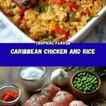 A flavorful Caribbean Chicken and Rice recipe featuring tender, spiced chicken thighs cooked with aromatic rice, coconut milk, and traditional Caribbean seasonings for a comforting one-pot meal.