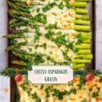 This Cheesy Asparagus Gratin Recipe relies heavily on cheese and butter, but you could substitute with vegan butter and plant-based cheeses designed for melting. The flavor and texture will differ but still be tasty.