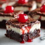 Delight in rich cherry cheesecake brownies featuring a fudgy cocoa brownie base, a creamy cheesecake layer swirled on top, and a vibrant cherry topping. Perfectly baked to create a marbled dessert that’s both decadent and refreshing.