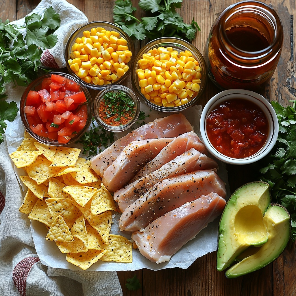 The ingredients for this Chicken Taco Soup Recipe are refreshingly simple yet each plays an essential role in building layers of flavor, texture, and vibrant color that make this dish pop. From the smoky tang of taco seasoning to the natural sweetness of corn, every component is thoughtfully chosen to deliver a wholesome, satisfying soup.