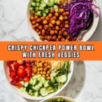 A nutritious and vibrant Chickpea Power Bowl featuring crispy spiced chickpeas, fresh vegetables, and a tangy lemon-olive oil dressing, perfect for a quick and healthy meal.