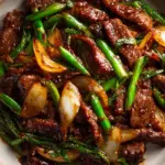 A quick and flavorful Chinese Beef and Onion Stir-Fry featuring tender flank steak marinated in savory sauces, stir-fried with caramelized onions, garlic, and ginger, finished with a rich hoisin and oyster sauce blend. Perfect weeknight dinner served with steamed rice.