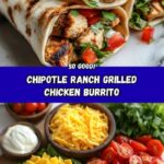A flavorful and easy-to-make Chipotle Ranch Grilled Chicken Burrito featuring tender grilled chicken marinated in chipotle ranch dressing, layered with fresh lettuce, tomatoes, and cheese, all wrapped in warm flour tortillas. Perfect for a savory lunch or dinner that combines smoky, tangy, and creamy flavors.
