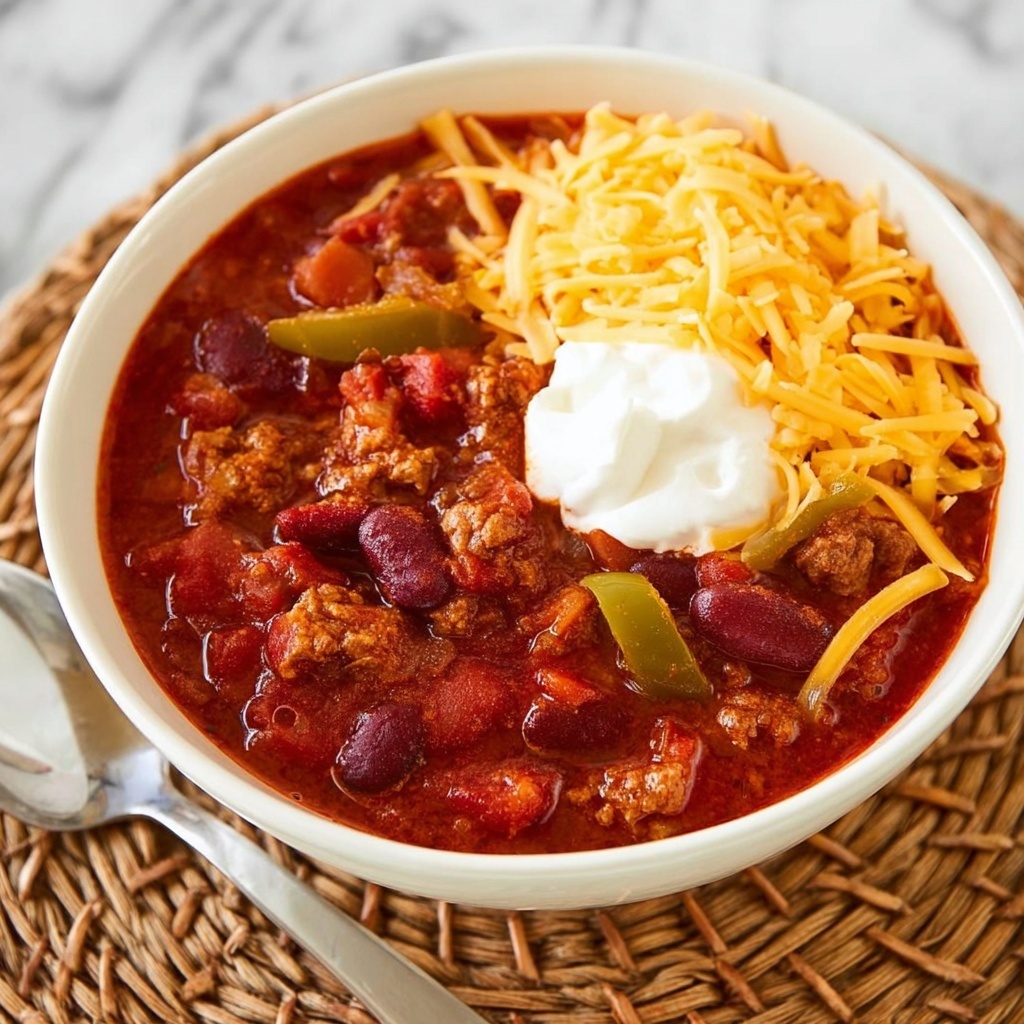 Once served in bowls, dollops of cool, creamy sour cream bring balance to the smoky and spicy notes, while a generous sprinkle of shredded cheddar cheese melts into the chili’s warmth to add luscious richness and just the right amount of gooey indulgence. Feel free to add fresh cilantro or sliced green onions for a fresh, zesty touch if you’re feeling adventurous.