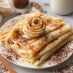 Stack your warm crepes on a plate, then add a generous dollop of Greek yogurt on top along with a sprinkle of cinnamon to mimic that classic cinnamon roll finish. The creamy tang of the yogurt pairs beautifully with the cinnamon, adding richness without heaviness.