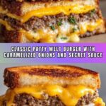 This Classic Patty Melt Burger with Secret Sauce is a delicious diner-style sandwich featuring juicy seasoned beef patties, melted Swiss cheese, caramelized onions, and a tangy homemade secret sauce, all grilled to golden perfection on rye bread. Perfect for a hearty main course, this recipe balances savory flavors and textures for an irresistible meal.