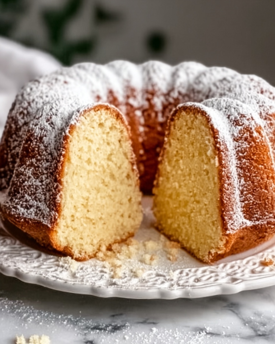 Start by preheating your oven to 350°F (175°C). Grease and flour a 10-inch tube pan or Bundt pan carefully — this step ensures your pound cake releases effortlessly after baking, preserving that beautiful shape and crust.