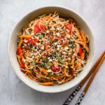 This salad is best enjoyed fresh or chilled rather than frozen. Freezing can affect the texture of the noodles and fresh veggies, making them disappointingly soggy upon thawing, so it’s best to resist the freezer when it comes to this dish.