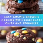Cosmic Brownie Cookies combine the fudgy richness of classic brownies with the chewy texture of cookies, enhanced by vibrant sprinkles and melty chocolate chips for a fun and colorful twist on a beloved dessert.