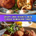 These Crab Beignets with Remoulade Dipping Sauce offer a crispy, flavorful Cajun-inspired appetizer. Light, fluffy deep-fried beignets filled with succulent lump crab meat are complemented perfectly by a tangy, creamy remoulade sauce for an irresistible seafood treat.
