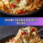- Combine with Spaghetti: Add the cooked and drained spaghetti to the skillet. Toss everything together to evenly coat the pasta with the creamy chicken sauce.