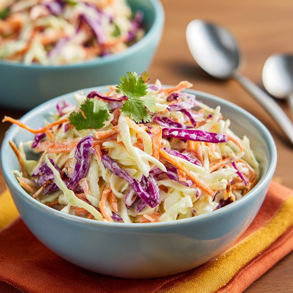 This classic coleslaw recipe features a crisp blend of green and purple cabbage with shredded carrots, all tossed in a creamy, tangy dressing made from mayonnaise, apple cider vinegar, and Dijon mustard. Perfectly balanced with a hint of sweetness and subtle celery seed flavor, this coleslaw is an ideal refreshing side dish for BBQs, burgers, or fried chicken. Easy to prepare and ready in just 15 minutes without any cooking required.