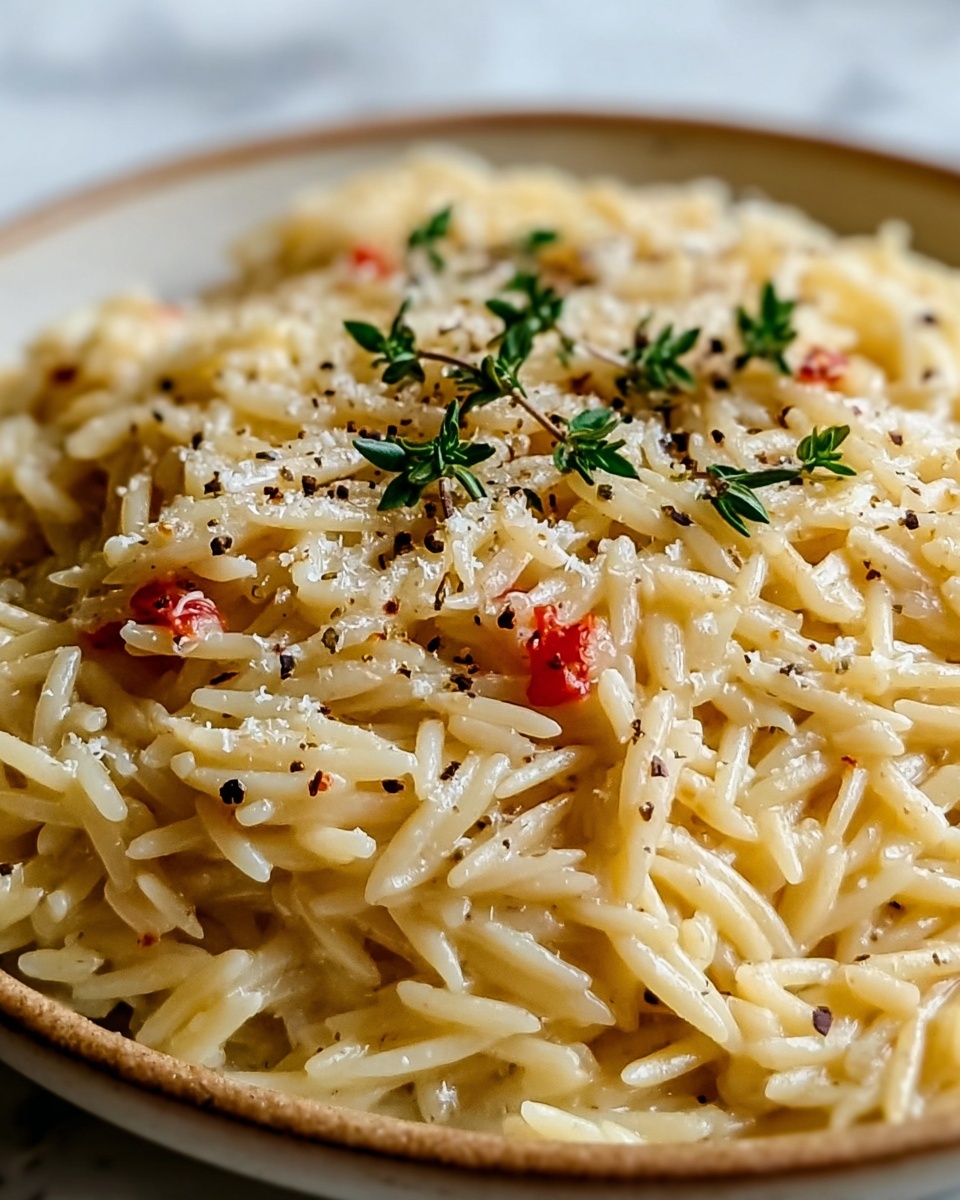 A luscious and comforting Creamy Garlic Parmesan Orzo recipe combining tender orzo pasta with a decadent garlic-infused Parmesan cream sauce, perfect as a side dish or a light main course.
