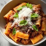 This Creamy Spicy Italian Rigatoni combines perfectly cooked rigatoni pasta with a rich, flavorful sauce made from Italian sausage, crushed tomatoes, and a touch of heat from red pepper flakes. The sauce is finished with heavy cream and Parmesan cheese for a luscious, comforting dish topped with fresh basil.