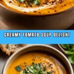 This creamy tomato soup pairs beautifully with a classic grilled cheese sandwich—the melty cheese and crispy bread are absolute soulmates with the soup’s smooth richness. For a lighter option, a crisp green salad or garlic breadsticks make fantastic companions that round out the meal without overwhelming the flavors.