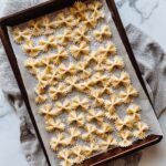 Place your baking sheet in the oven and bake for approximately 20 to 25 minutes. Keep a close eye toward the end to avoid burning. The pasta will transform into irresistibly crunchy chips with a beautiful golden brown hue – you can even smell that tantalizing roasted aroma wafting through your kitchen!