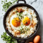 A simple and delicious recipe for Crispy Rice with Two Eggs. This dish features perfectly cooked rice combined with scrambled eggs, then crisped on both sides in a skillet to create a satisfying texture contrast. Ideal for a quick breakfast or comforting meal, it is easy to prepare with minimal ingredients.