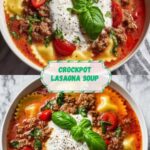 This Crockpot Lasagna Soup is a hearty and comforting dish that combines all the delicious flavors of traditional lasagna into a warm, easy-to-make soup. Ground beef, tomatoes, herbs, and broken lasagna noodles simmer together in a slow cooker, topped with a creamy ricotta and Parmesan mixture and melted mozzarella cheese. Perfect for a cozy meal with minimal prep and maximum flavor.