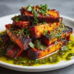 Crunchy Parmesan Carrots with Salsa Verde is a flavorful Mediterranean-inspired side dish featuring roasted carrot sticks seasoned with garlic, smoked paprika, and a generous topping of golden, crisp Parmesan cheese. Served alongside a vibrant, herbaceous salsa verde made with fresh parsley, cilantro, capers, and lemon juice, this dish delivers a perfect balance of savory, tangy, and spicy flavors. It’s an ideal healthy and gluten-free accompaniment to roasted meats or grilled fish.