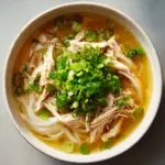 To serve, place a scoop of warm cooked rice into each bowl. Layer the shredded chicken over the rice, then ladle the hot broth generously on top. Finally, garnish with chopped green onions and, if you like, a sprinkle of toasted sesame seeds. If you want to elevate the experience, serve with soy sauce or kimchi on the side for added zest and texture.