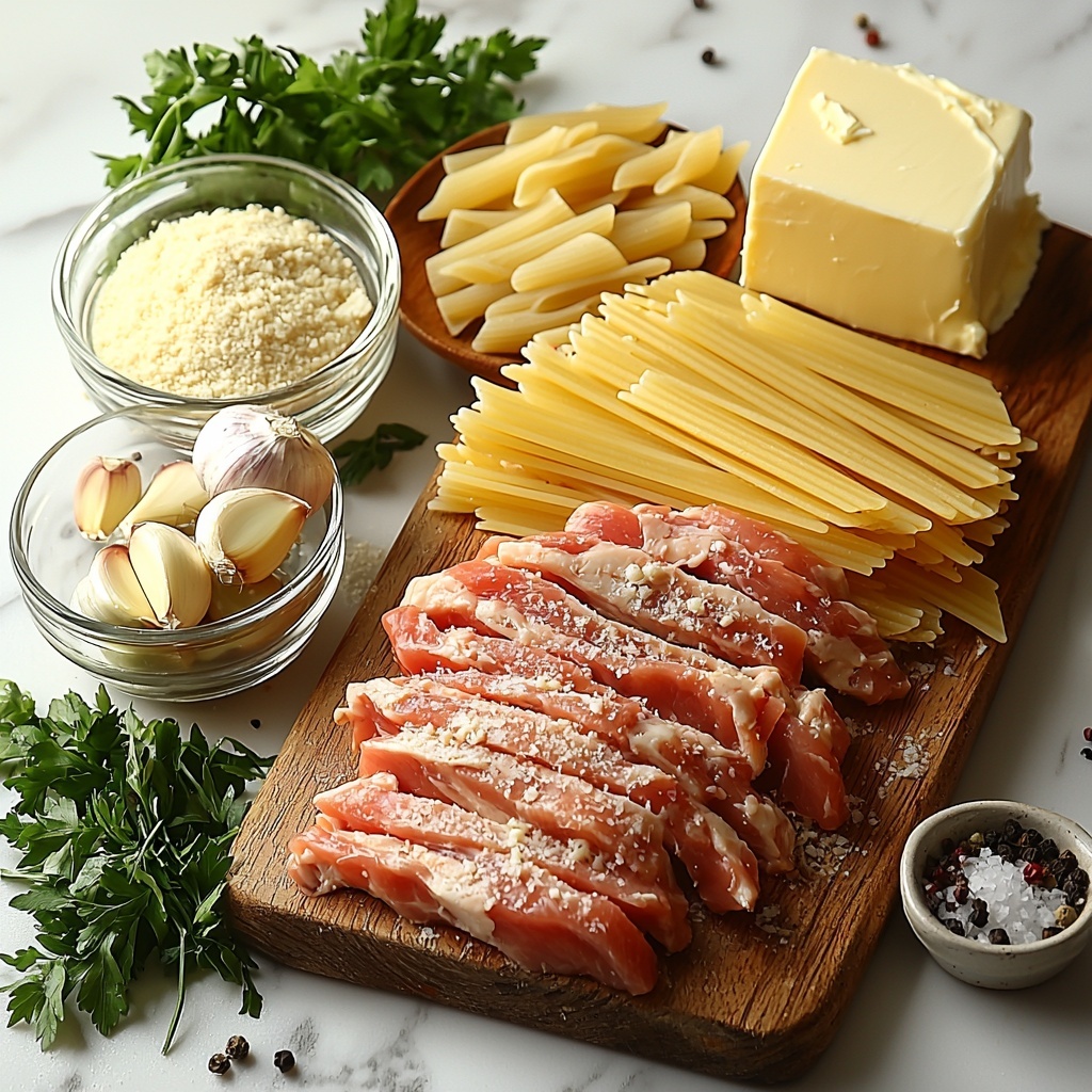 Each ingredient in this Easy Garlic Parmesan Chicken Pasta Recipe is straightforward but plays an essential role, working together to build layers of flavor, creamy texture, and delightful colors on your plate.
