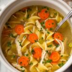 This Easy Homestyle Chicken Noodle Soup is a comforting and hearty soup made with tender shredded chicken, wide egg noodles, and a flavorful blend of vegetables and herbs. Perfect for a chilly day or whenever you need a warm, satisfying meal.