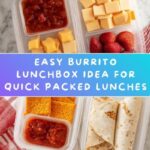 A quick and easy burrito lunchbox idea perfect for a convenient and delicious meal. This recipe features your choice of burritos paired with fresh strawberries, cheese cubes, salsa, and crunchy cheese-its for a balanced and satisfying lunch that’s ready in minutes.