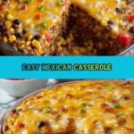 This Easy Mexican Casserole Recipe is a delicious, comforting dish featuring layers of seasoned ground beef, beans, tomatoes, and tortilla chips topped with melted cheddar cheese. Perfect for family dinners, it combines bold Mexican flavors with a creamy texture and crispy tortilla crunch, baked to bubbly perfection.