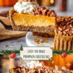 This cheesecake pairs beautifully with seasonal fruit like spiced apples or poached pears. For a cozy touch, serve alongside a cup of hot coffee, chai tea, or even a warm mulled cider to complement the pumpkin spices.