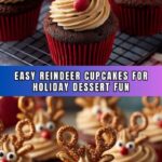 These Easy Reindeer Cupcakes are a festive and fun holiday treat perfect for Christmas celebrations. Made with a moist chocolate cake base, topped with rich chocolate frosting, and decorated with mini pretzels, candy eyes, and red chocolate candies to resemble adorable reindeer faces, they are sure to delight kids and adults alike.