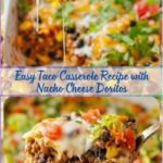 This Easy Taco Casserole is a flavorful and convenient dish perfect for weeknight dinners. Combining seasoned ground beef, black beans, corn, crispy crushed Doritos, and a generous amount of melted Mexican cheese blend, it’s topped off with your favorite fresh toppings for a delicious and satisfying meal that the whole family will love.
