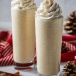 The ideal Eggnog Milkshake Recipe texture is thick and creamy but smooth enough to sip through a straw. If it’s too thick, add a splash of eggnog to thin it out slightly.