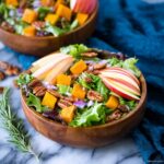 This Fall Harvest Salad with Apples is a vibrant and nutritious salad combining maple roasted butternut squash, toasted pecans, fresh mixed greens, crisp bell pepper, red onion, and sweet apple slices. It’s enhanced with a homemade apple cider vinaigrette featuring pure maple syrup and fresh rosemary, creating a perfect balance of sweet and savory flavors ideal for autumn meals.