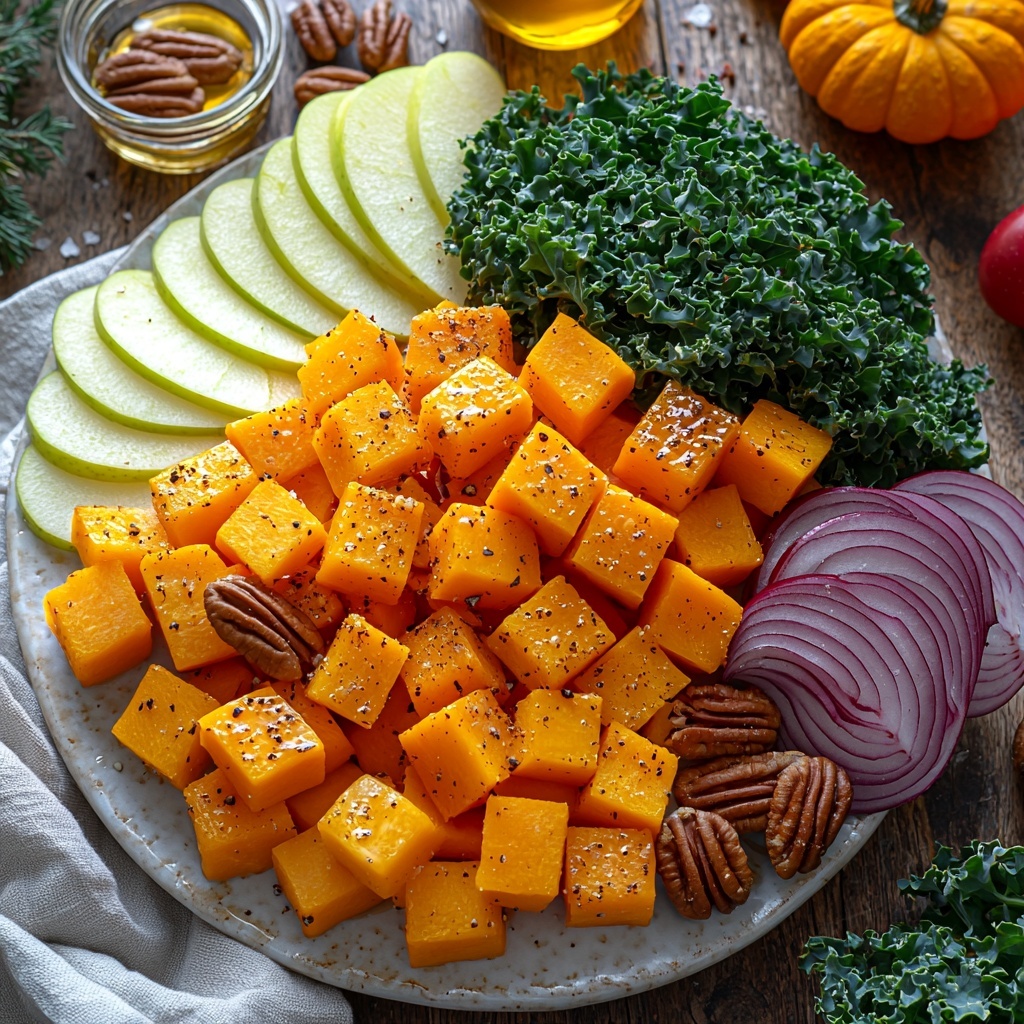 Start by roasting your butternut squash so it develops a naturally sweet, caramelized flavor that will anchor the salad. If you prefer, roasted sweet potato cubes work beautifully here, adding a similar tender sweetness that’s perfect for this dish.