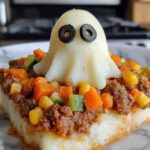 If you’re craving a hearty, comforting meal that also brings a bit of fun to the table, you absolutely have to try the Ghostly Ghoul-ash Recipe. This spooky twist on classic goulash blends savory ground beef with vibrant veggies and a rich tomato sauce, all served over tender potatoes. What really makes it stand out is the playful ghost-shaped sour cream garnishes with olive eyes—perfect for a cozy autumn dinner or a Halloween gathering. The Ghostly Ghoul-ash Recipe is easy to make, filled with warm flavors, and guaranteed to delight both kids and adults!
