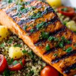 Place a generous scoop of quinoa salad on each plate, top with a perfectly grilled salmon fillet, and sprinkle fresh dill or parsley over the top for an inviting finishing touch. Serve while warm for the best experience.