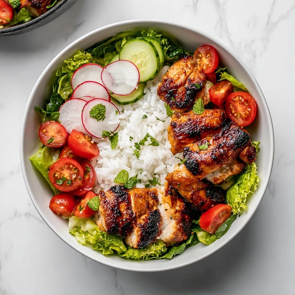 Warm the chicken in the oven or microwave gently to preserve moisture. Reheat the rice salad at room temperature or slightly chilled to keep the fresh textures intact. Combining warm chicken with the fresh rice salad is the perfect way to re-experience this flavorful bowl.
