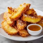 These apple fries are wonderfully versatile. Pair them with a yogurt-based dip like vanilla Greek yogurt or a nut butter dip for a balanced snack. They also make a delightful side to a savory breakfast plate or a fun dessert alongside a scoop of cinnamon ice cream.